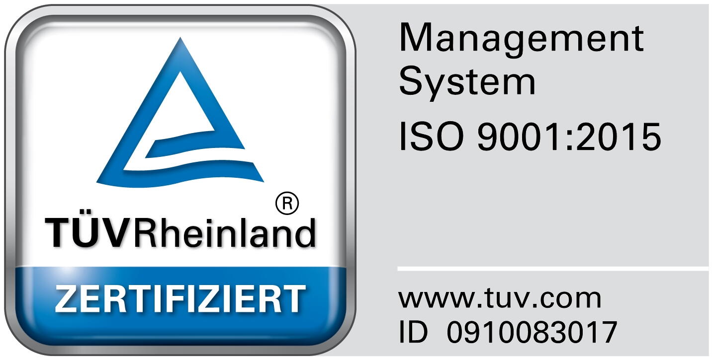 We have been certified in accordance with DIN ISO 9001 by TÜV Rheinland.